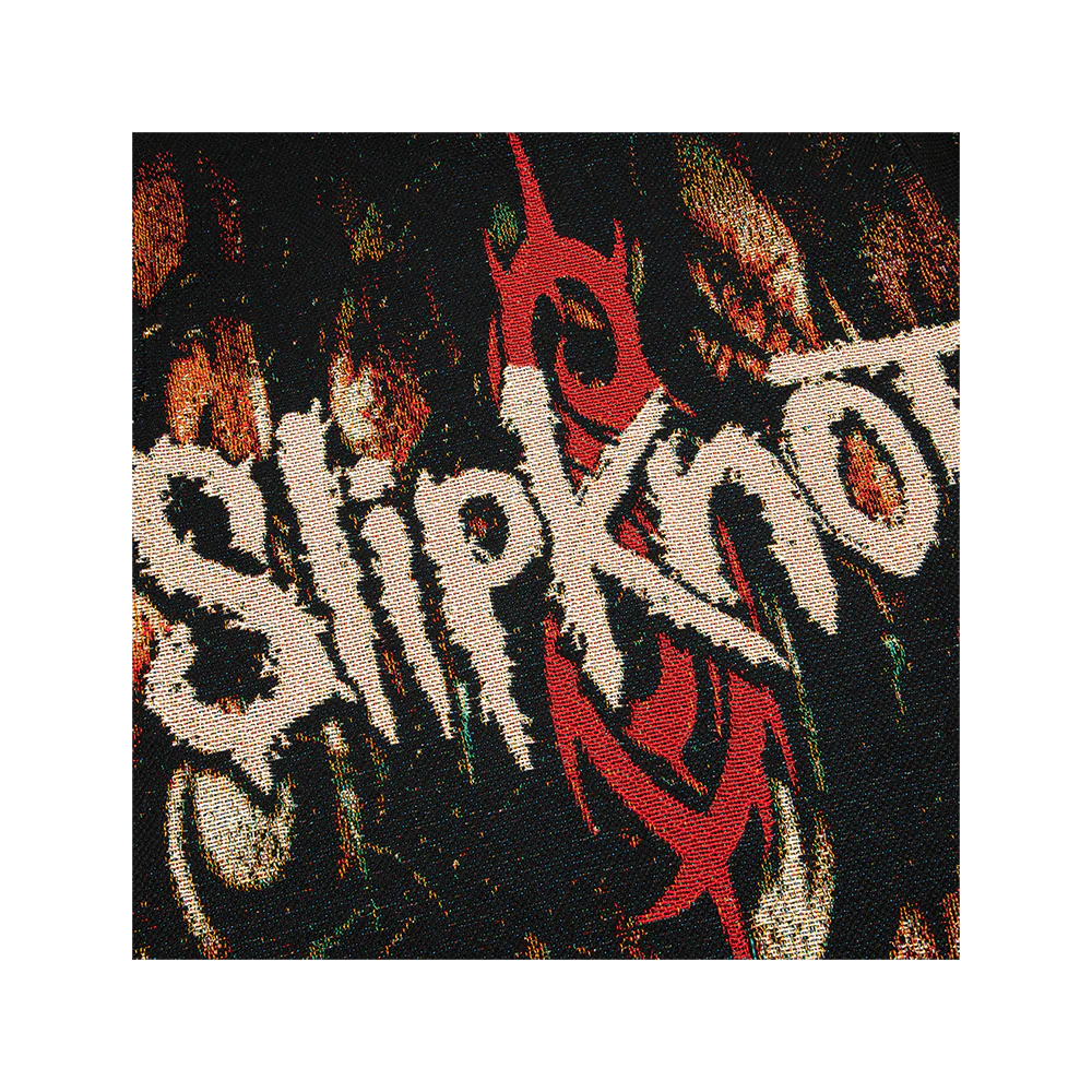 Oversized woven pullover hoodie featuring Slipknot logo with tribal S on front, "don't ever judge me" on left arm, "here comes the pain" on right arm and electric chair image on back.Â
